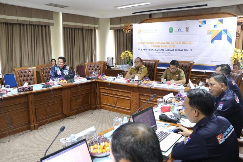 SANGATTA – Wakil Bupati Kutai Timur (Kutim) Kasmidi Bulang memimpin Rapat Umum Pemegang Saham (RUPS) Tahun 2023 Bank Perkreditan Rakyat (BPR) Kutim Tahun Buku 2022, Senin (20/3/2023) di Ruang Arau, Lantai 2 Kantor Bupati Kutim, Pusat Perkantoran Pemkab Kutim.