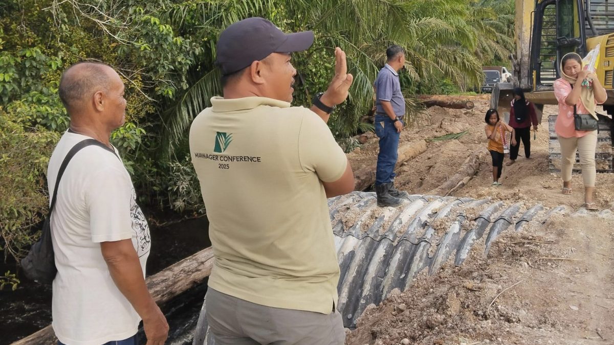 Lebih lanjut ia menyebut, pihak perusahaan juga menurunkan alat berat seperti Greader, Bomag , TLB. Selain itu, juga ada gorong gorong NF Besar, termasuk Bahan Bakar Minyak (BBM) juga Dump Truck mengangkut material timbunan dalam membenahi infrastruktur jembatan jalan warga sekitar.